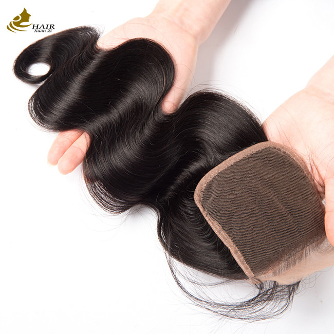 Corps ondulé Remy Fermeture de dentelle de cheveux humains 10A 4x4 Base en soie 5